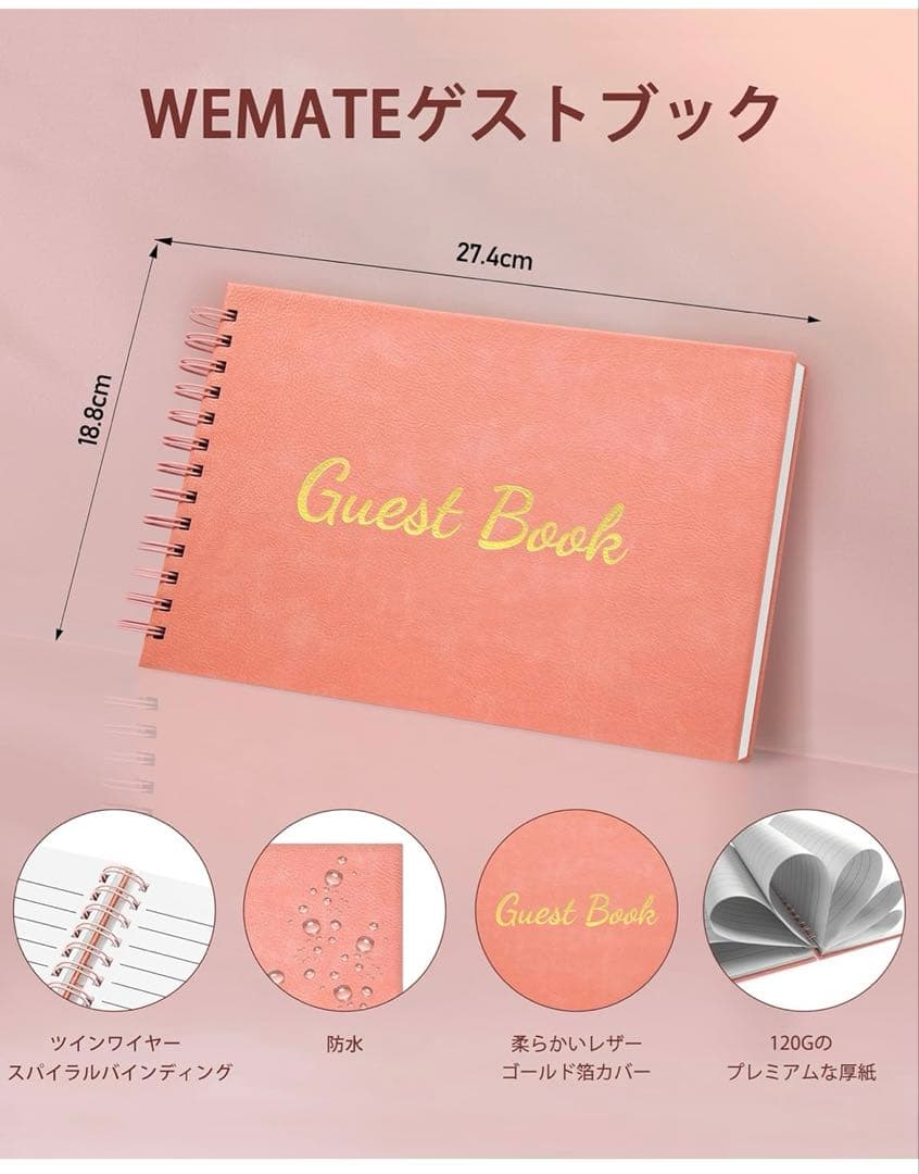 人気&新作!WEMATE ゲストブック 芳名帳 ゲストサインブック 100ページ ピンクがご覧になれます