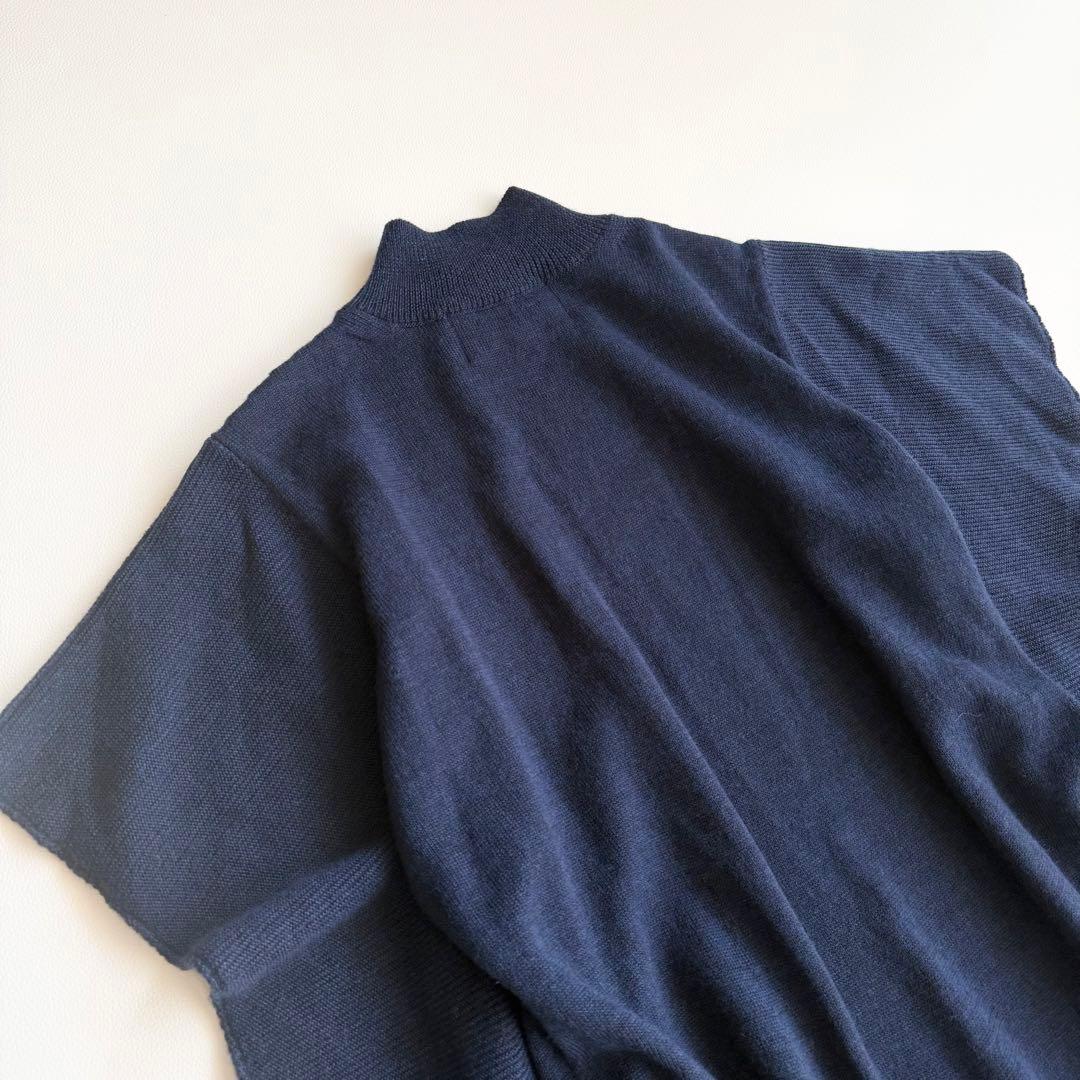 ネイビー、ハイネック、長袖、リブ袖、ミドル丈、ウール、ナイロン、日本製