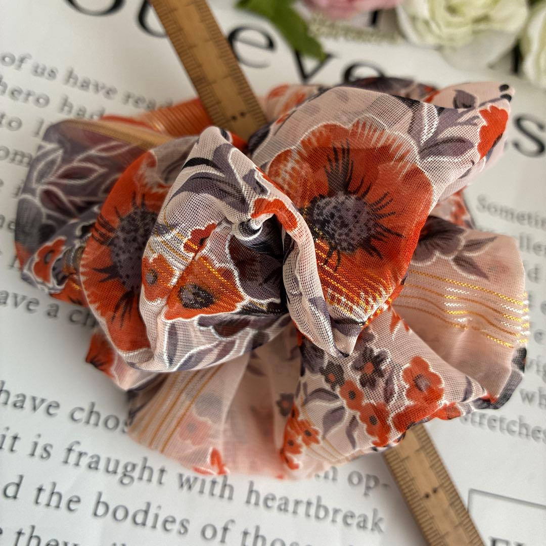海外有名ブランドハンドメイドシュシュ☆オレンジ花柄2024登場